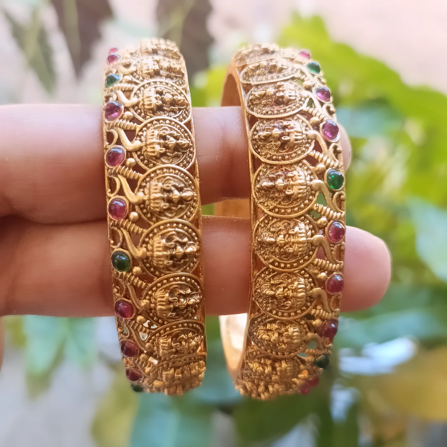 Antique Lakshmi Design with Ruby and Green Stones Kada Bangles