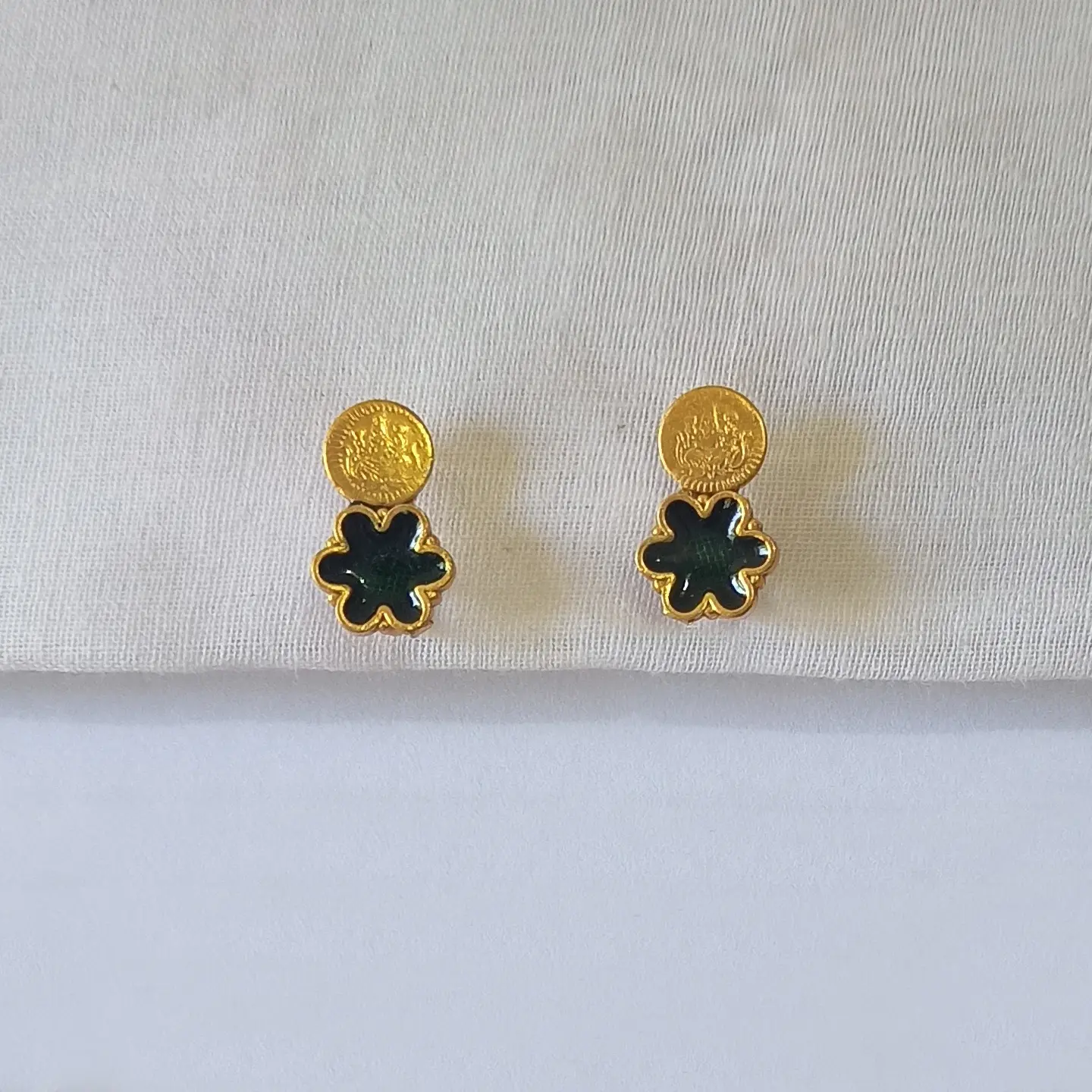 Black Flower Motif with Lekshmi Coin Choker Set is a graceful Kerala traditional jewellery piece that blends floral elegance with divine Lakshmi coin detailing. Crafted with an antique gold finish and black accents, this choker set is perfect for weddings, temple visits, and festive occasions.