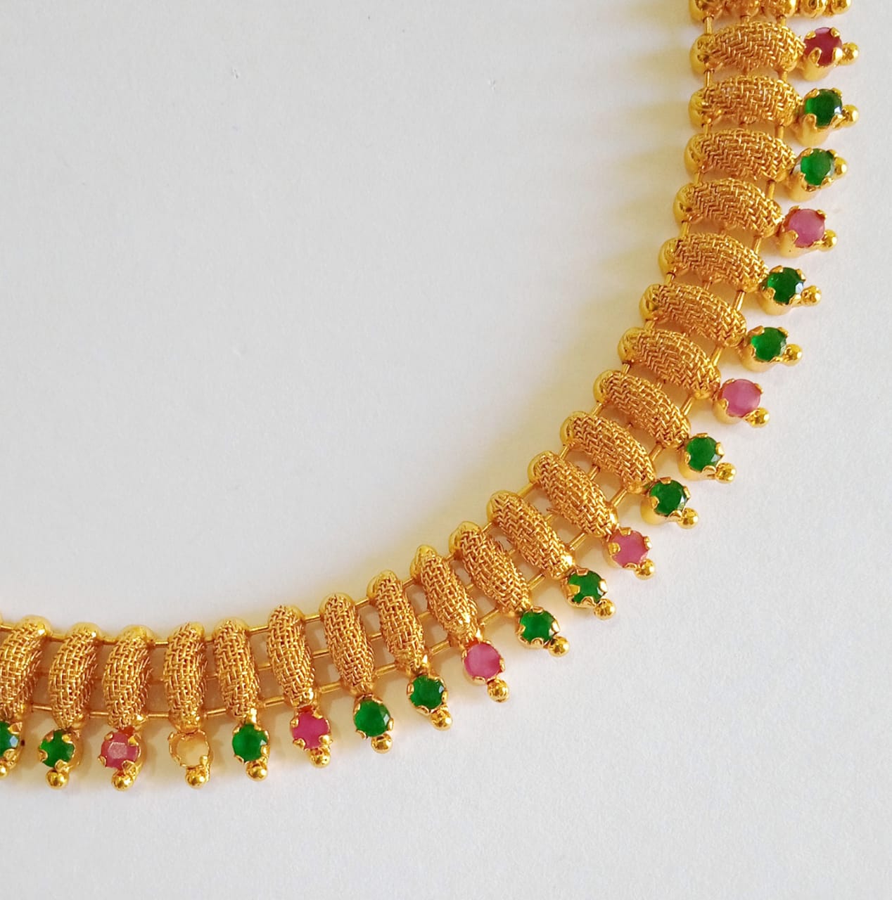 Traditional AD Stones Necklace for Marriage is a stunning choice for brides who love elegant and premium imitation jewellery Kerala collections with a rich handcrafted finish. Designed to enhance bridal and wedding looks, this skin friendly and hypoallergenic necklace offers timeless beauty, comfort, and luxurious sparkle for long ceremonies.